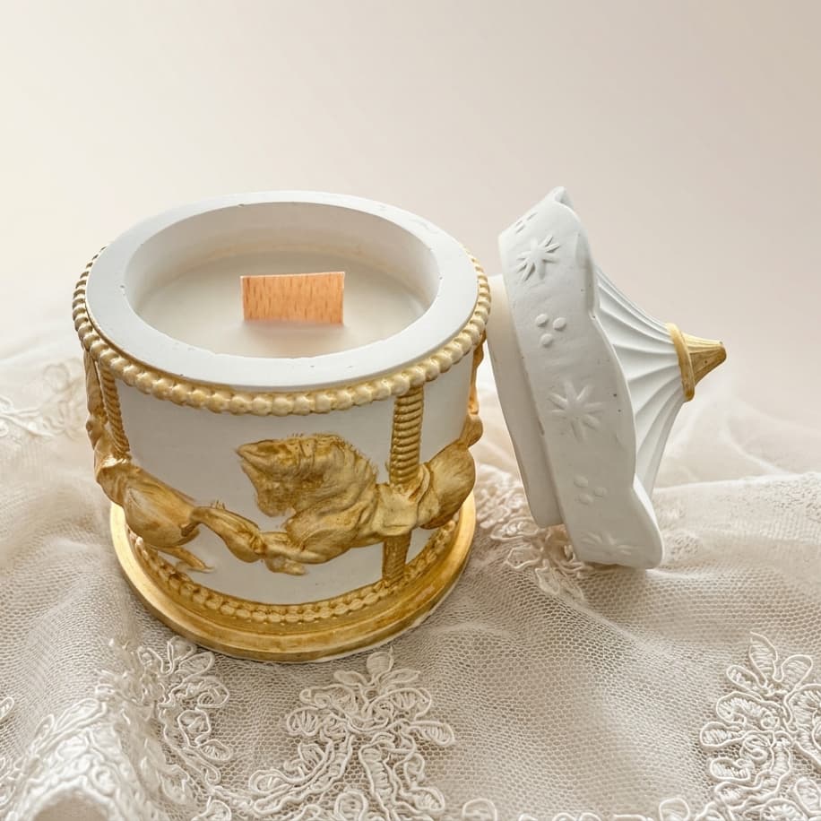 Nostaljik atlıkarınca formunda el yapımı dekoratif mum. Büyüleyici detaylarıyla çocukluk anılarınızı canlandırır. Dekorasyon ve hediye için mükemmel bir seçim.