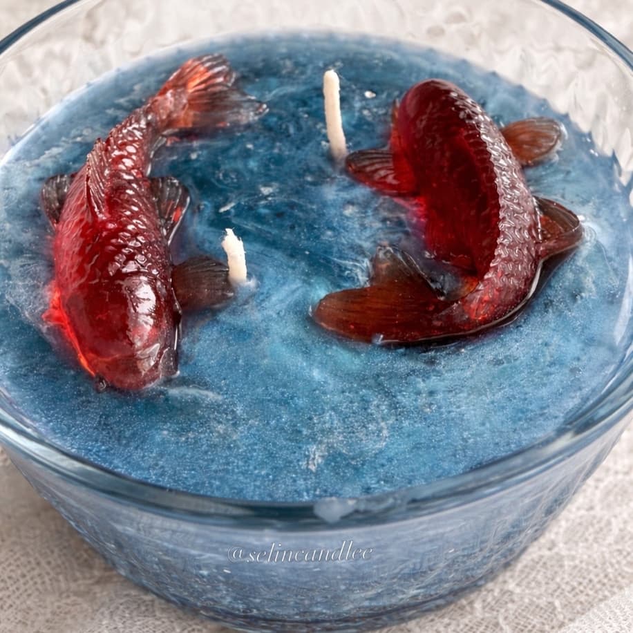 Zarif koi balığı formunda el yapımı dekoratif mum. Detaylı işçiliği ve şık tasarımıyla yaşam alanlarınıza sanatsal bir dokunuş katar. Balık severler ve özgün dekorasyon arayanlar için ideal bir hediye.